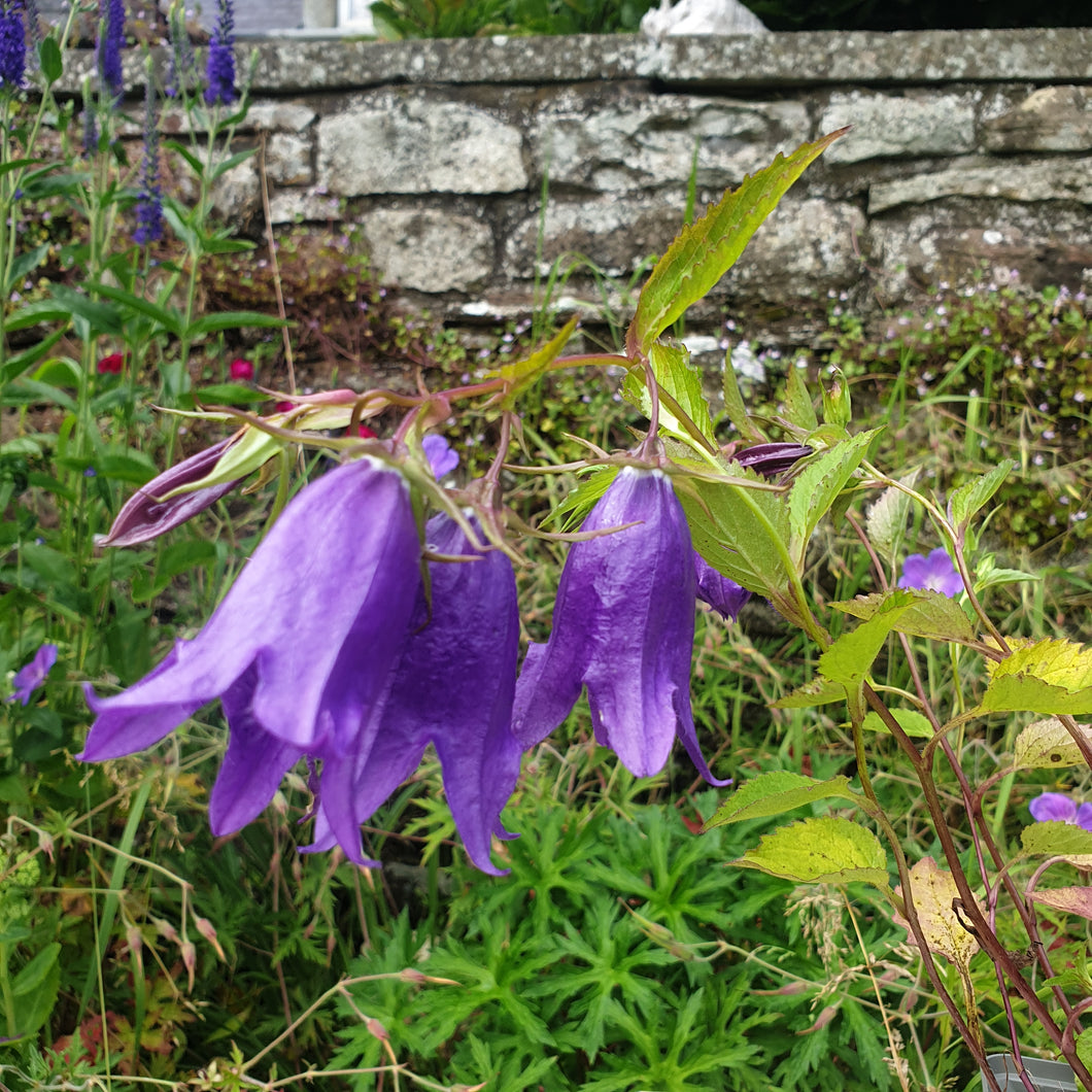 A colourful campanula bearing spikes of rich violet blue bell flowers on strong stems perfect for cottage gardens or where it can reach an ultimate height of 1m and spread of 50cm. Perfect for providing a dash of strong colour in summer. Grow in full sun or part shade in fertile free draining soil. Hardy and attractive to pollinators.